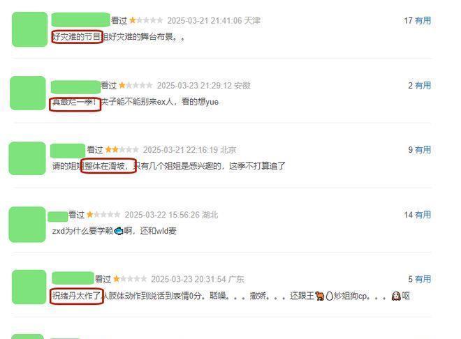 本以为请来这么大的咖坐镇,这一季《浪姐》应该是稳了,但当我点开豆瓣评论区,却看到满屏的一、二星的差评,且观众给出差评的理由还相当一致——“最烂的一季”、“别开一点麦”、“人情世故”。